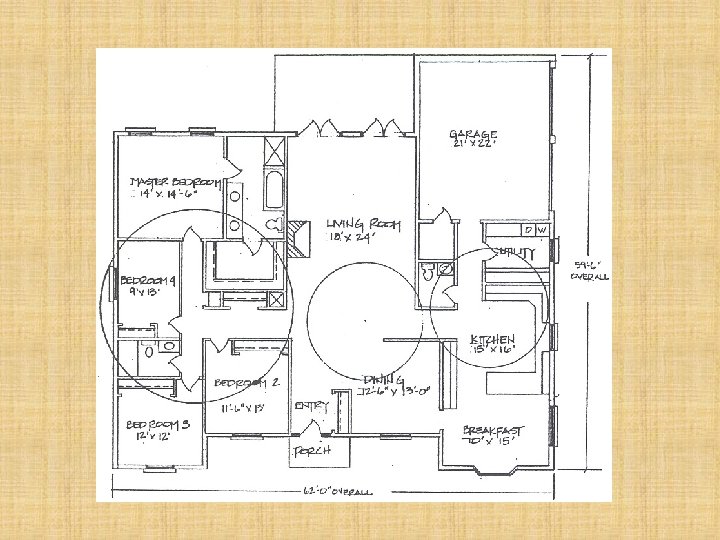 Circulation Avoid going through middle of rooms Don’t interfere with good furniture arrangement nor interrupt activities Don’t interfere with private zone Don’t go through kitchen work area Easy access from kitchen to rest of house Direct access from entrance to clean-up area Short paths to conserve human energy