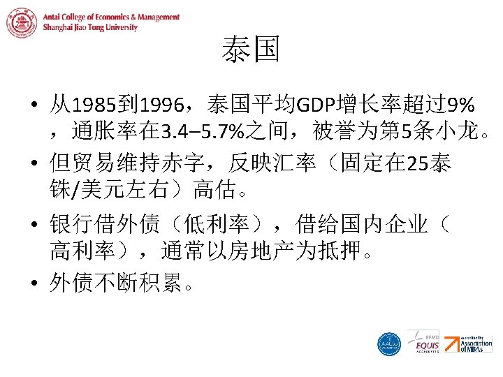 泰国的外债 Thailand's External Debt (USD mn) 120000 100000 80000 60000 40000 20000 0 1981 1982 1983 1984 1985 1986 1987 1988 1989 Long-term external debt 1990 1991 1992 1993 Short-term external debt 1994 1995 1996 1997 1998 1999 2000