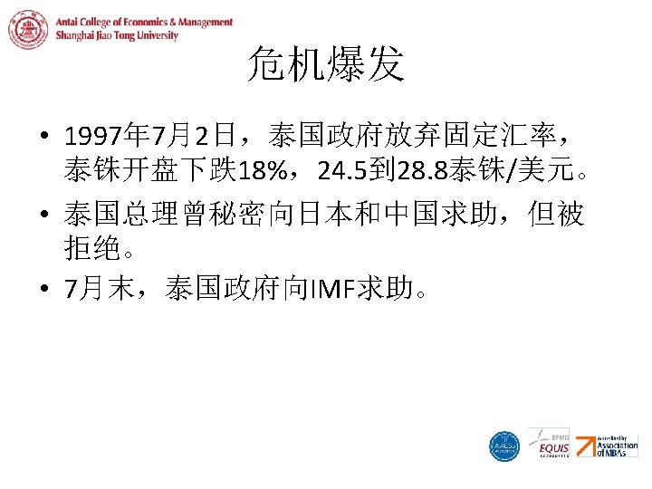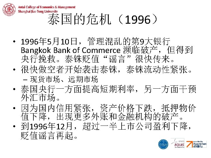 -9 ма 6 р9 ма 6 й 9 ию 6 л 96 се н 96 но я 96 ян в 9 ма 7 р9 ма 7 й 9 ию 7 л 97 се н 97 но я 97 ян в 9 ма 8 р9 ма 8 й 9 ию 8 л 98 се н 98 но я 98 ян в 9 ма 9 р9 ма 9 й 9 ию 9 л 99 се н 99 но я 99 ян в 0 ма 0 р0 ма 0 й 0 ию 0 л 00 се н 00 но я 00 ян в 危机扩散 Asian Exchange Rates 800 700 600 500 400 300 200 100 0 Thailand Indonesia South Korea Malaysia Taiwan