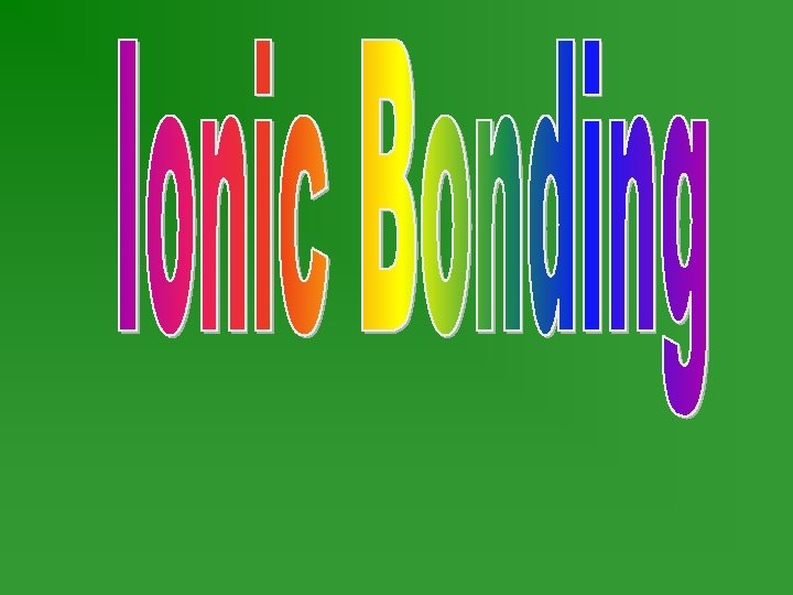IONIC BONDING • Involves the transfer of electrons. • Electrons Lost by Cation = Electrons Gained by Anion