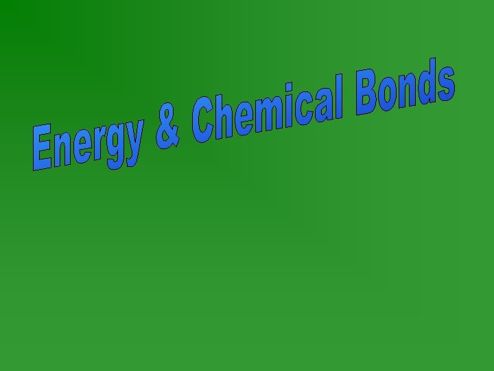 Energy & Chemical Bonds Making a bond Re. Leases energy! It’s exothermic!