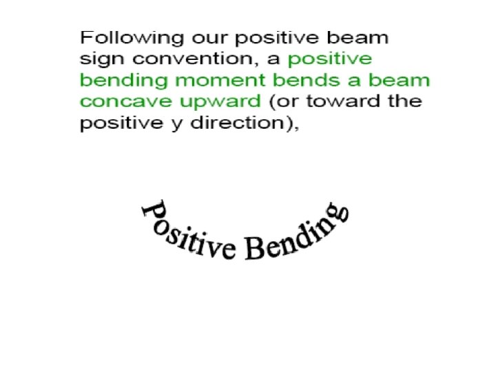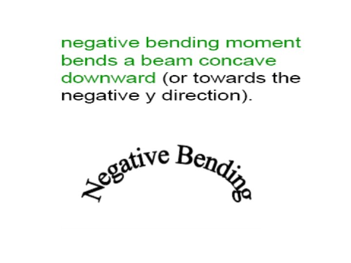 Shear Forces, Bending Moments - Sign Conventions Shear forces: positive shear: negative shear: Bending moments: positive moment negative moment left section right section