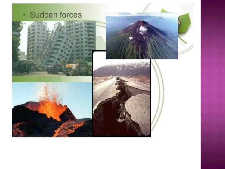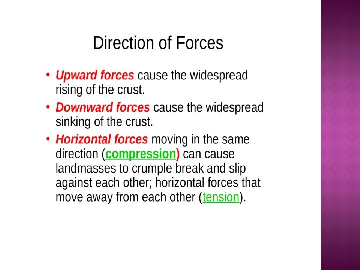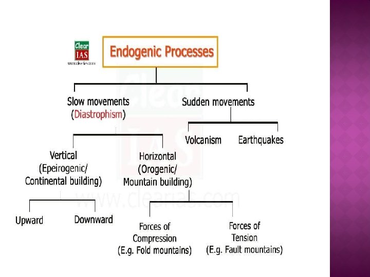 � Internal process - a process that shapes the earth with forces from the interior of the earth. Internal processes are known as endogenetic process. � The three forces are compressional force, tensional force and shear/lateral force.