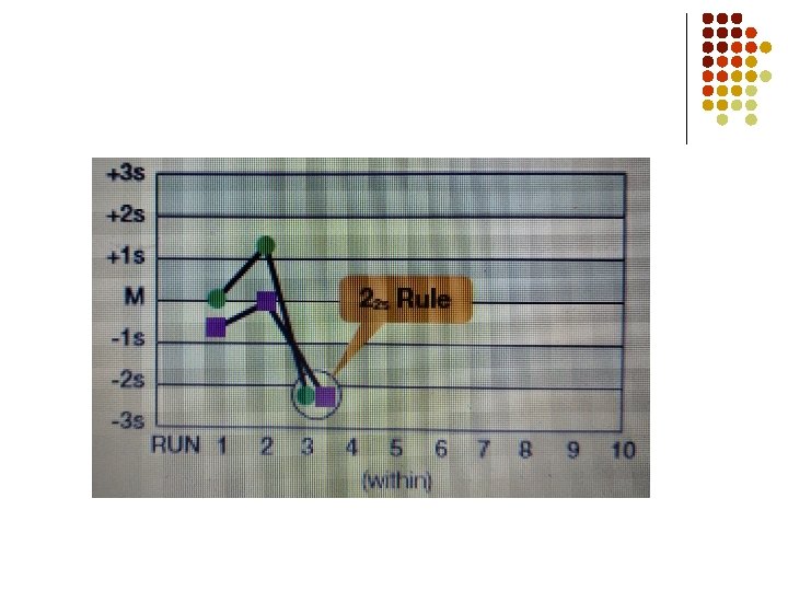 Warning rules Warning 12 SD : It is violated if the IQC value exceeds the mean by � 2 SD. It is an event likely to occur normally in less than 5% of cases.