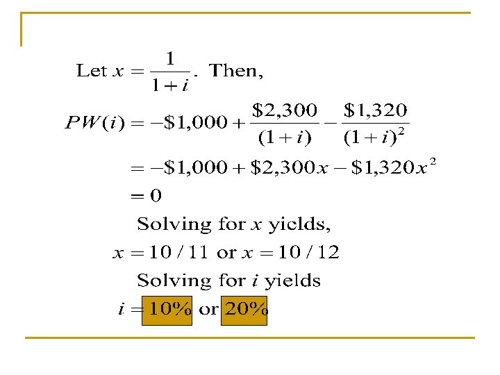 Example 7. 6 Multiple Rates of Return Problem $2, 300 $1, 000 • Find the rate(s) of return: $1, 320