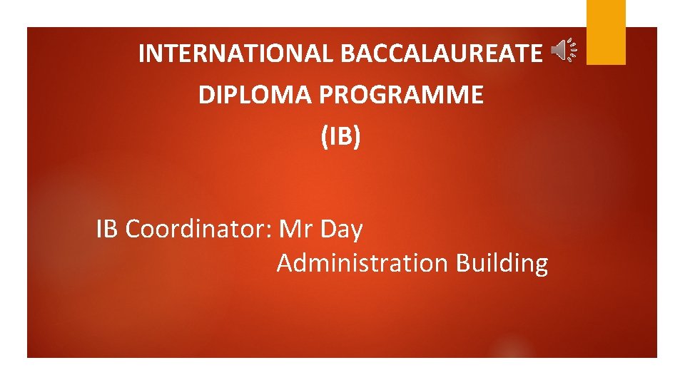 INTERNATIONAL BACCALAUREATE DIPLOMA PROGRAMME (IB) IB Coordinator: Mr Day Administration Building