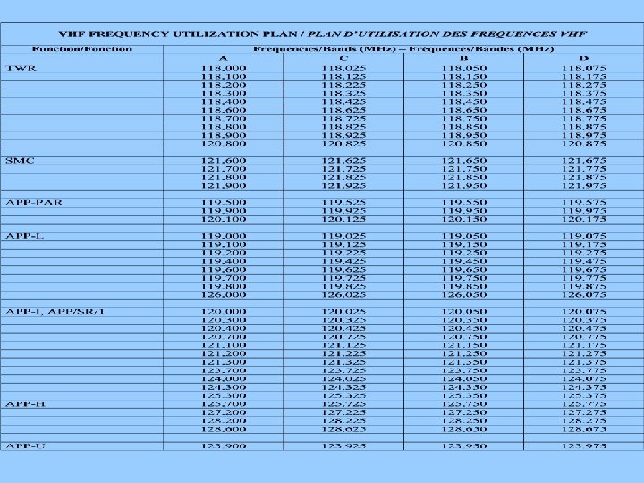 ILS • The prelude has a list of pairs of glide and localizer frequencies to select from. • Part I: - National and international assignments in Country order. • Page 1 of Part I consists of AFI countries and their 3 -letter codes. The table consists of 12 columns: -