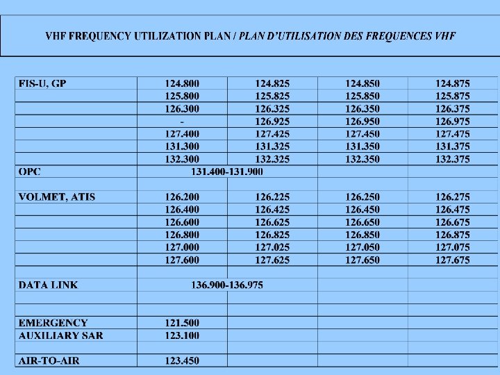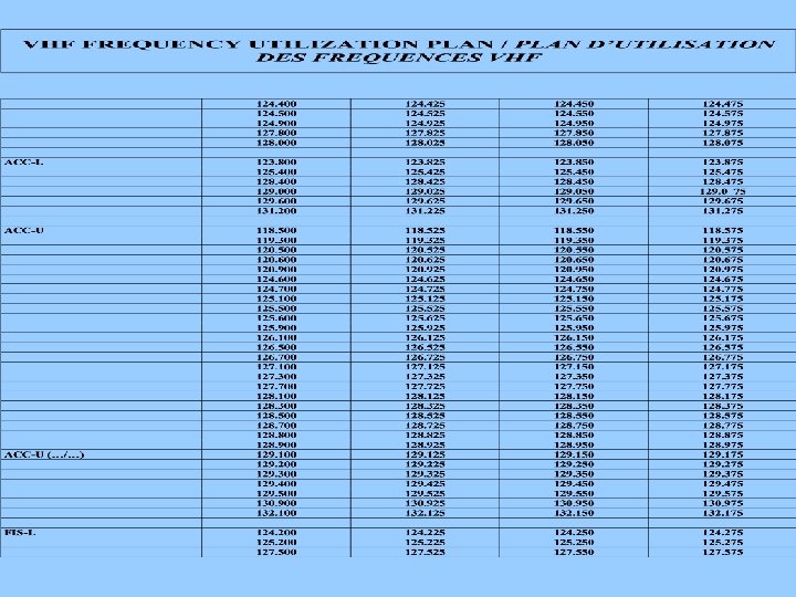 COM List No. 3 • List of facilities operating in frequency band 117. 975 -137 MHz • APIRG/13 adopted the following VHF Frequency Utilization Plan in accordance with AFI/7 [ Abuja, 12 -23 May 1997] Recommendation 9/11.
