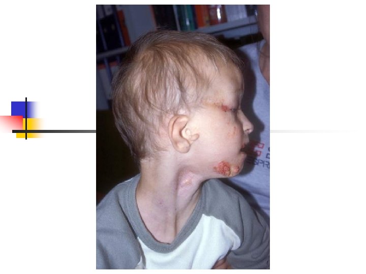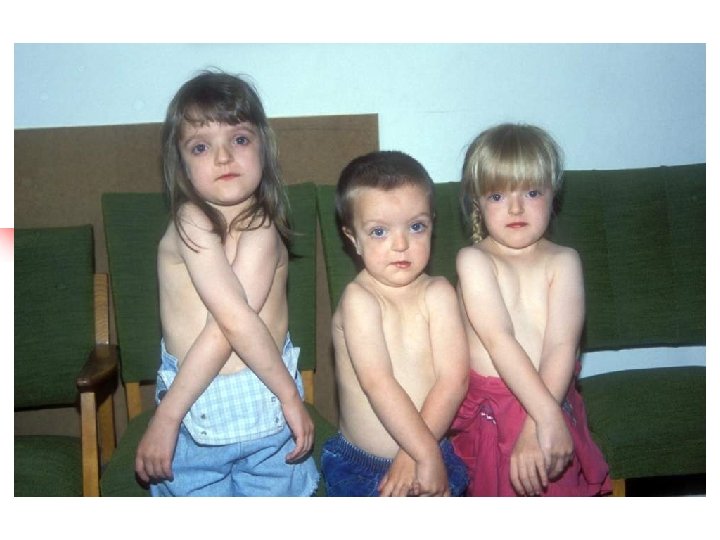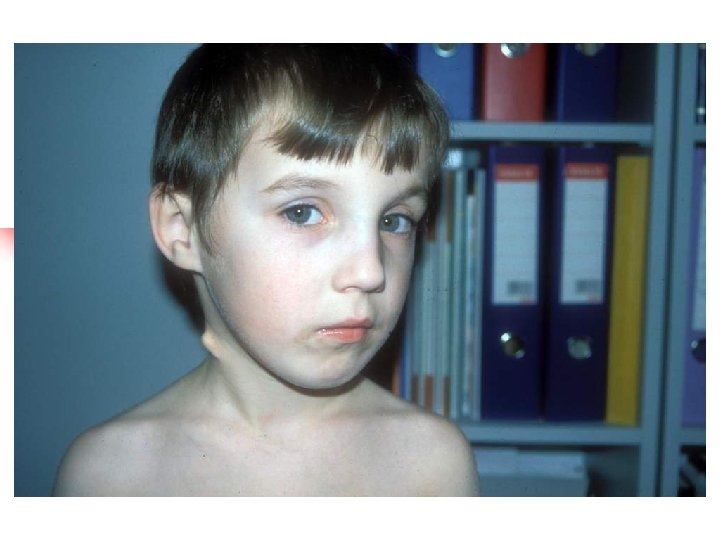 Pendred syndrome Sensorineural deafness, goiter and malformation of the inner ear v Hearing loss is most frequently profound, variable in its onset, rapidly progressive v Goiter results from a specific defect in the organification of iodine (abnormal release of iodine trapped by thyroid after administration of perchlorate) v Malformation of the inner ear in 86% of cases: dilatation of the vestibular aqueduct and endolymphatic sacs, Mondini malformation Inheritance autosomal recessive Mutation of SLC 26 A 4 gene encoding pendrin – protein primarily involved in transport of chloride and iodide ions. Nonsyndromic deafness DFNB 4 also result from mutation in the SLC 26 A 4 gene.