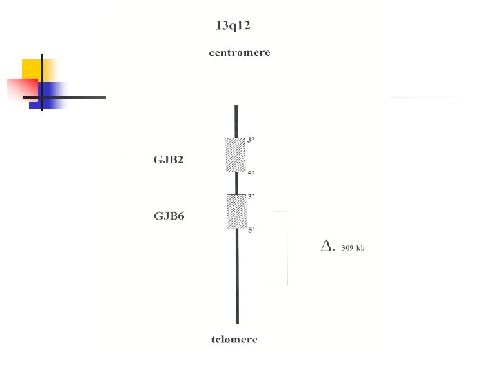Hearing loss caused by mutation in GJB 2 (connexin deafness) – – – most common cause of hearing loss in many populations deafness usually stable, onset is nearly always prelingual (but not necessarily congenital); hearing may be normal at birth and hearing loss progress rapidly during first few month of life (some babies may pass neonatal hearing screening but become deaf during infancy) GJB 2 encodes a gap junction protein – connexin 26 most common mutation is a deletion of single guanine – 35 del. G (70% mutant alleles, carrier frequency 2 -3%) mutation 35 del. G in thought rather a founder effect not hot-spot deletion GJB 2 mutations may also be a rare cause of autosomal dominant deafness – syndromic and nonsyndromic (DFNA 3). Specific mutation: - hyperkeratosis palmoplantaris - mutilating keratoderma – (Vohwinkel sy. ) - keratoderma – ichthyosis – deafness (KID sy. )
