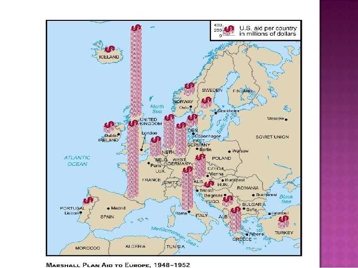 Europe Marshall Plan. Massive American financial aid Truman Doctrine and Marshall Plan. wmv Lay in ruins (USA) provided lots of $$$$ to rebuild Europe & prevent the spread of communism