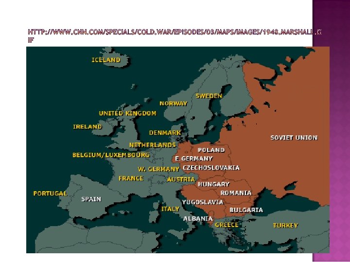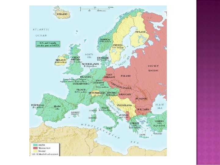 Countries behind Iron Curtain are shaded red. Winston Churchill “From Stettin in the Baltic to Trieste in the Adriatic an iron curtain has descended across the Continent. Behind that line lie all the capitals of the ancient states of Central and Eastern Europe. ”