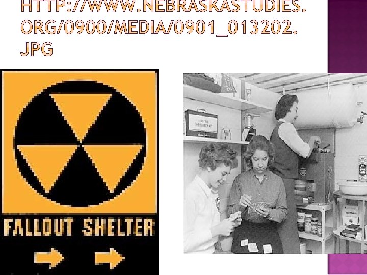 Americans feared Communism & the threat of a nuclear war Schools & drills to train children Bomb shelters in basements Public Service Announcement