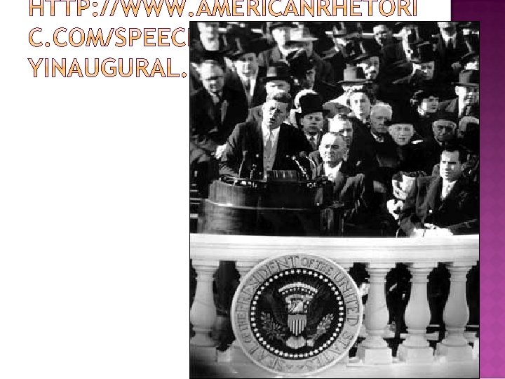 “pay any price, bear any burden, meet any hardship, support any friend, oppose any foe, in order to assure the survival and the success of liberty. ” “Ask not what your country can do for you; ask what you can do for your country” Kennedy's Speech