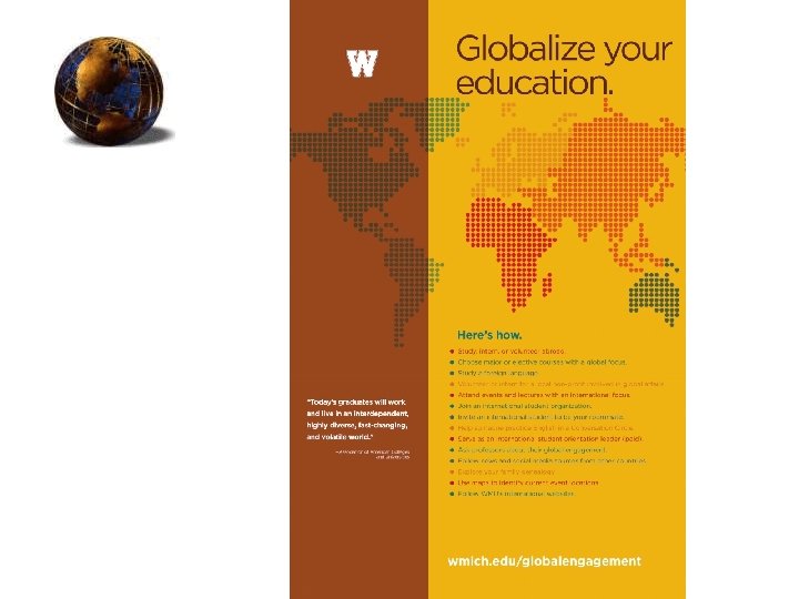IEC Priorities 2014 -2015 • What does it mean for WMU to be globally engaged? • How can we enhance our global engagement in ways that impact the lives of our students? International Education Council April 2, 2015