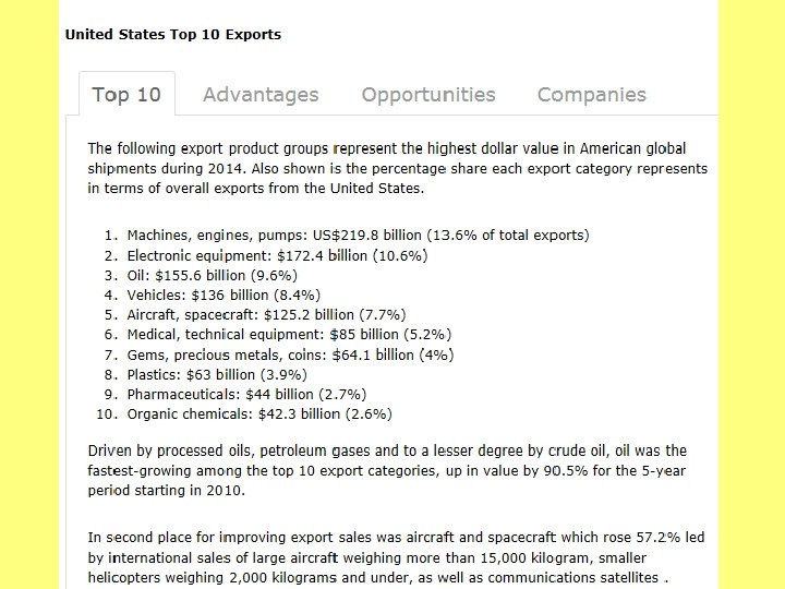 Economic Influence of USA • The United States of America is the world’s foremost economic and military power. • It has the third largest population in the world (327 million) and its economy produces around one quarter of the world’s wealth - $19. 4 trillion in 2017. Income in 2017 was $59, 500 per capita, one of the highest in the developed world. • Ths US is home to many entrepreneurs and has created many iconic products which are highly sought after around the world, for example Apple and Facebook.
