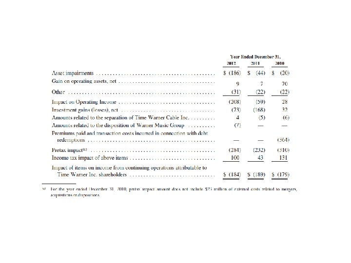 TIME WARNER INC. QUARTERLY FINANCIAL INFORMATION (Unaudited) The following table sets forth the quarterly information for Time Warner: