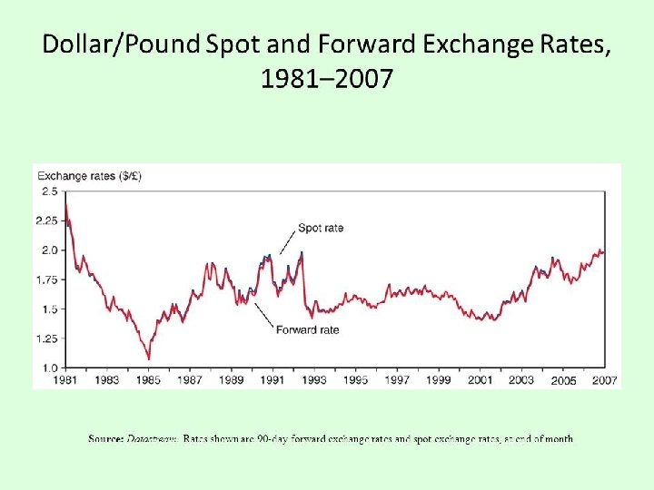 Example: Speculation The current spot exchange rate is $1. 30 per euro. You think the euro is going to strengthen in the next 12 months. You project the exchange rate to be $1. 45 per euro in 12 months. How can you exploit the exchange rates to try to make a profit in $? • 1. You could buy euros today at $1. 30 each and then sell the euros for dollars at $1. 45 each in one year (if your projection is right. • You buy 100 euros that cost you $130. You wait a year and sell the 100 euros for $145. You profit $15. • 2. Forward contract for buying 100 euros at $1. 30 in one year. • In one year you spend $130 dollars and get 100 euros in return. You immediately sell those euros for $145 on the spot market. You profit $15.