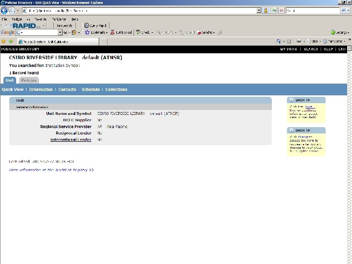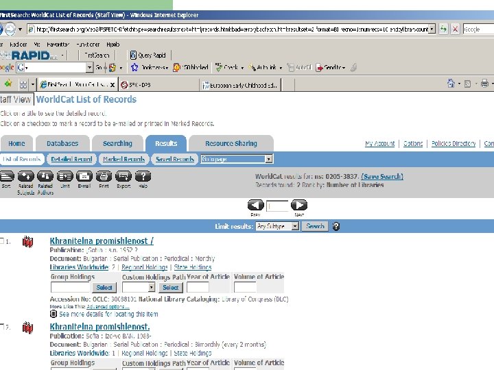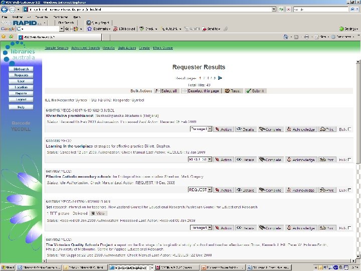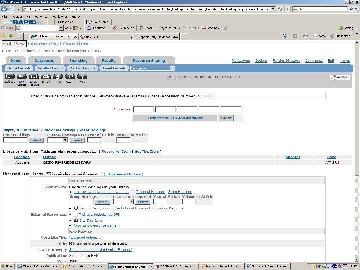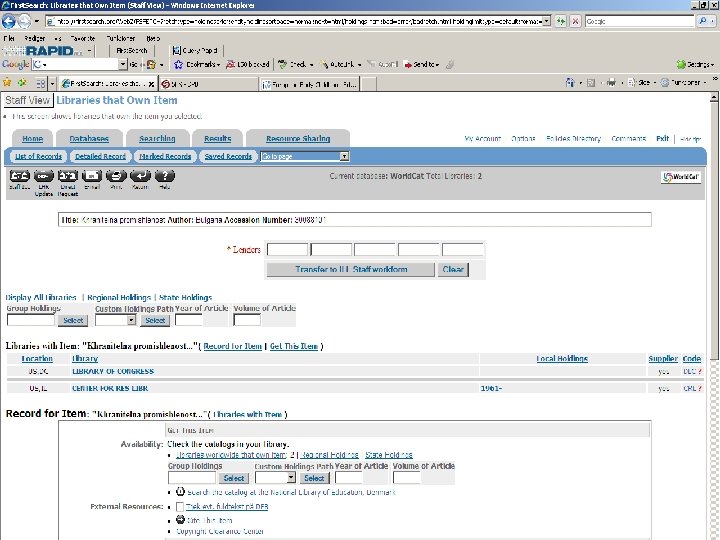 WCRS is not commonly used outside the US l l l World. Cat Resource Sharing doesn’t necessarily fit into ILL workflows in a non-US environment No training possibilities are available - teach yourself is your only option No local support