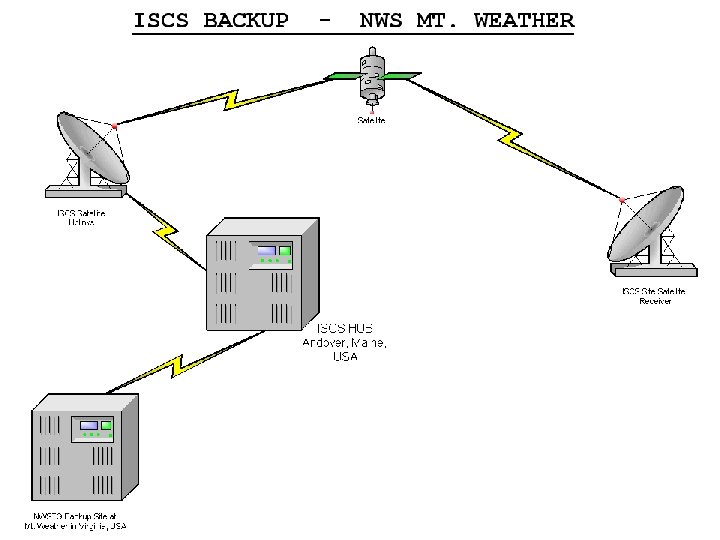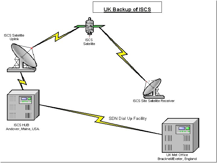 ISCS Backup Ø U. K. WAFC is the backup for the US WAFC product delivery via ISDN dialup connection to Andover Hub. Ø The ISCS Successor has increased the number of Backup options with multiple ISDN dialup connections between the Andover Hub, UK WAFC, the Aviation Weather Center (AWC) Kansas City, and planned for the NWS backup Telecommunication Gateway currently under development.