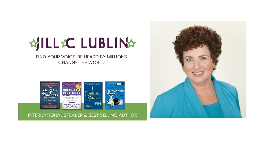 The Profit of Kindness • A press release was sent regarding “The Divided States of America” • 7 Major Market TV Interviews, including Fox News, CBS News Morning Shows • 75 Radio and Podcast Interviews -AND COUNTING! • Article Placements • • Inc. Selling Power Magazine CEO Magazine Forbes Small Business • Profit. Of. Kindness. com • Year of Kindness – Monthly Kindness Circles • Register at http: //Jill. Lublin. com/yearofkindness