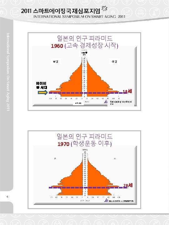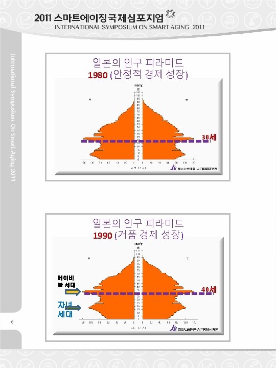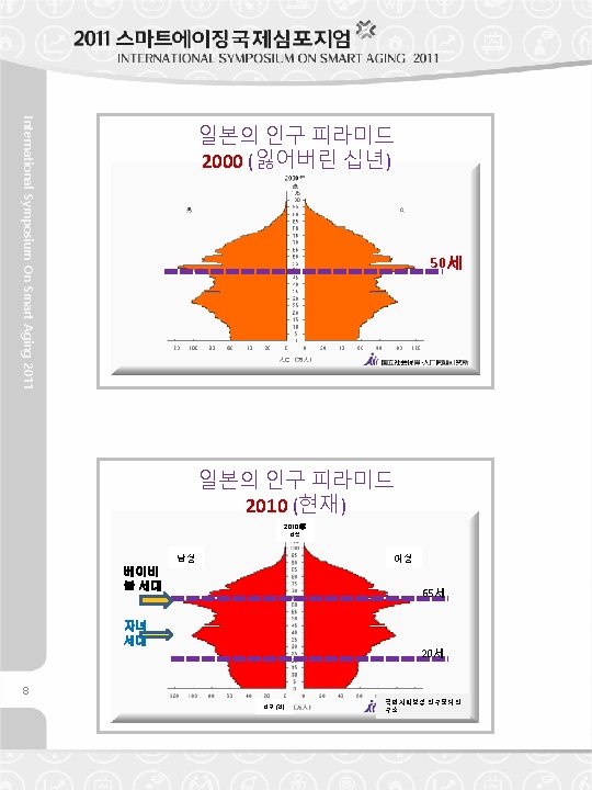 Age 30 International Symposium On Smart Aging 2011 Population Pyramid of Japan 1980 (Stable Economic Growth) Population Pyramid of Japan 1990 (Bubble Economic Booming) Baby Boomer s B. B. J r. Age 40 7