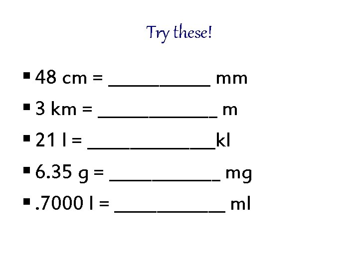km hm dam m 8. dm 80. 8 m = _____cm cm mm