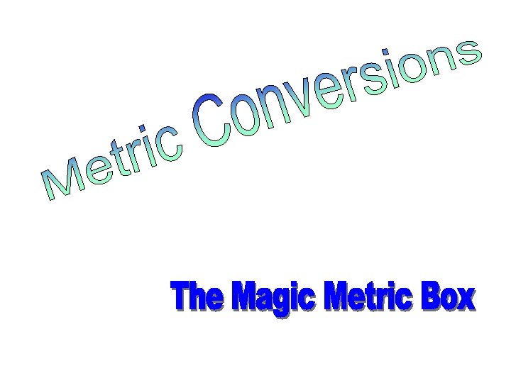 Symbols in Metrics • Metric symbols never have periods: – km, hm, dam, m, dm, cm, mm – kl, l, ml – kg, g, mg • These are SYMBOLS – not abbreviations!