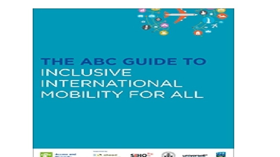 ABC Guide to Inclusive Mobility: Institutions • It takes everyone • Collaborate with others, internally access office, counsellors, and externally home and host colleges • Do an audit of your buildings, classrooms, are they accessible? • Pause and Talk to the students, ASK them • Make a Written PLAN supporting the student, ASSESS the students needs and communicate it • Draw down ERASMUS Funding • SHOW diversity on your communications, websites • Ensure a Quality experience, provide VISIBLE information +supports including NAMES, Grants and supports • Train your staff • Know your community organisations