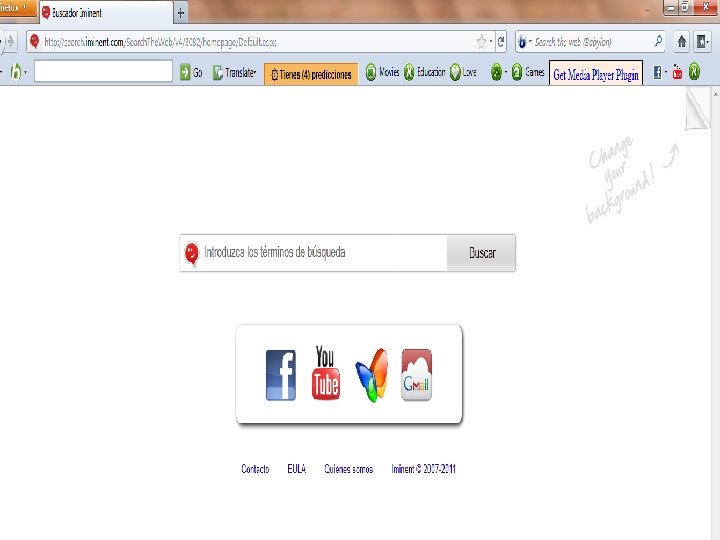 El correo electrónico: midireccion@servidorcorreo. com Hotmail, Gmail, Yahoo, etc. EL SPAM (CORREO BASURA) EL MAYOR PROBLEMA DEL CORREO ELECTRÓNICO midireccion [arroba] miservidor. com Datos adjuntos NUNCA abras un archivo con extensión. exe o con extensión. scr pues son ejecutables que podrán infectar tu ordenador. Cuidado también con los. zip ya que pueden ser ejecutables camuflados bajo la apariencia de un comprimido
