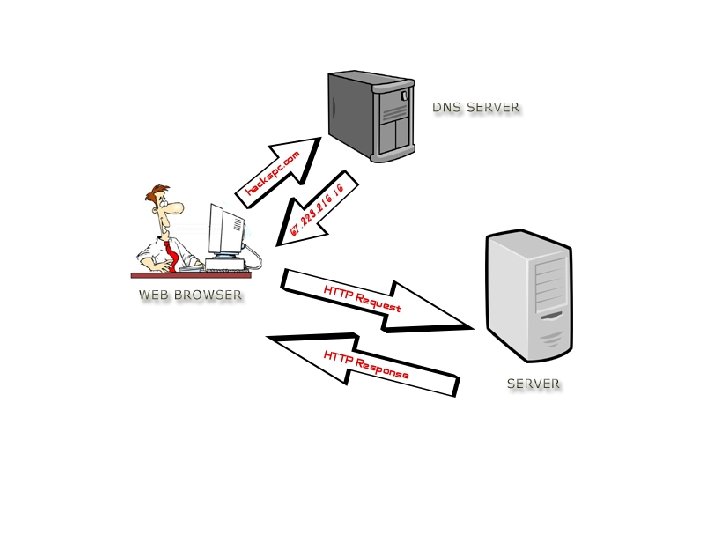 Adresni sustav Interneta • Svako računalo ima svoju IP adresu koja služi za identifikaciju računala na mreži pr: 130. 129. 23. 89 IP adresa računala • Svaki poslužitelj ima fiksni IP • Svaki sadržaj nalazi se na nekom poslužitelju • Mi tražimo sadržaj preko simboličke adrese (www. facebook. com) • Prvo se spajamo sa DNS serverom koji pretvara simboličku adresu u brojčani IP kako bi se spojili sa traženim računalom • DNS poslužitelji - računala na kojima se pretvaraju simboličke adrese u stvarne IP adrese