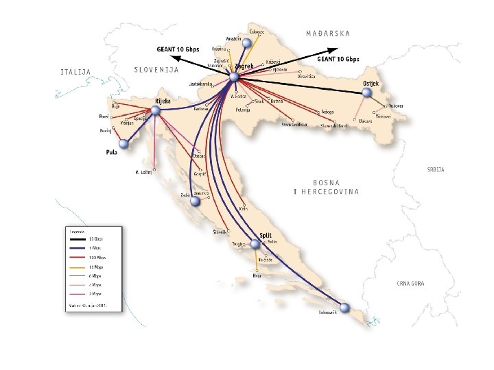 Povezivanje s internetom • CARNet – nekomercijalni davatelj usluga – učenicima, studentima i nastavnicima omogućuje pristup internetu po povoljnijim cijenama (dio cijene mora ostati jer se CARNet koristi infrastrukturom komercijalnih davatelja usluga) – daje elektronički identitet
