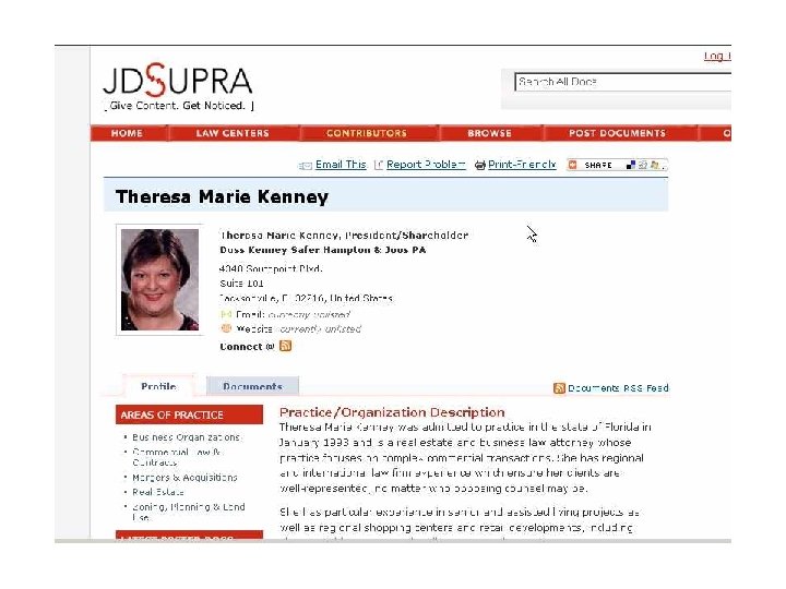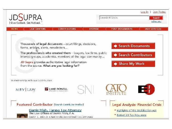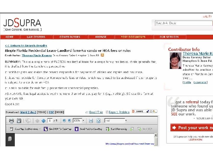 Attorney Work Product Sites • JDSupra Documents are tied to attorney profiles • Scribd • Doc. Stoc • Law. Link • Legal On-Ramp