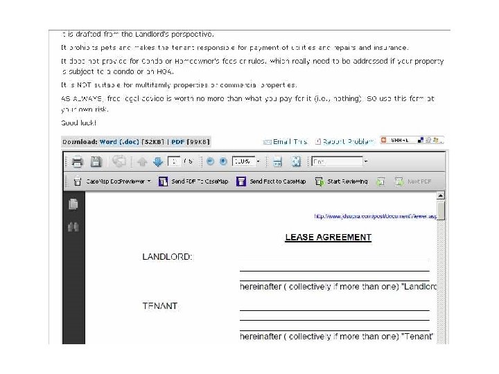Forms and Sample Contracts l Who publishes the site? A legal publisher? bar association? l Does the site sell forms? l Who wrote the form? l Use with caution, tailor to your facts