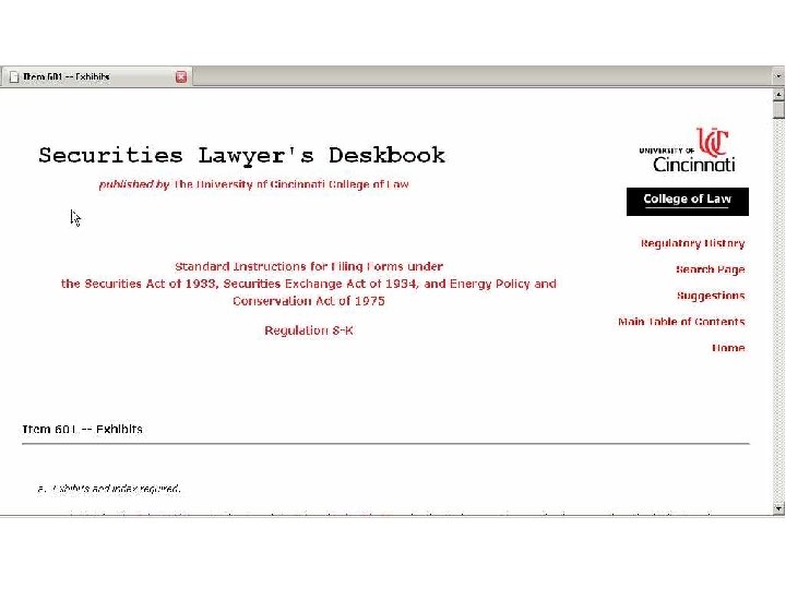 Transactional Documents via SEC EDGAR • sample SEC filings • documents attached: management contracts, executive compensation plans, articles of incorporation, by-laws, material contracts, voting trust agreements See Item 601, Regulation S-K.