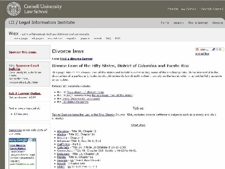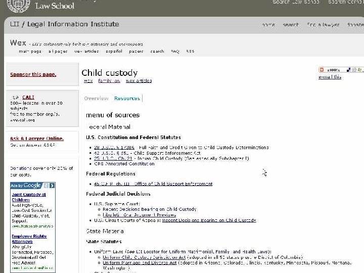Use LEGAL Search Engines • Cornell University Legal Research Engine • Lexis. Web • Find. Law. Crawler • Justia • List of Search Legal Engines