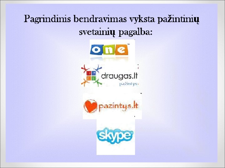Bendravimas internetu. Koks jis? • Žymiai paprastesnis. • Bendraudamas vaikas gali būti toks, kokį save įsivaizduoja ir norėtų matyti. • Be didelių įsipareigojimų.