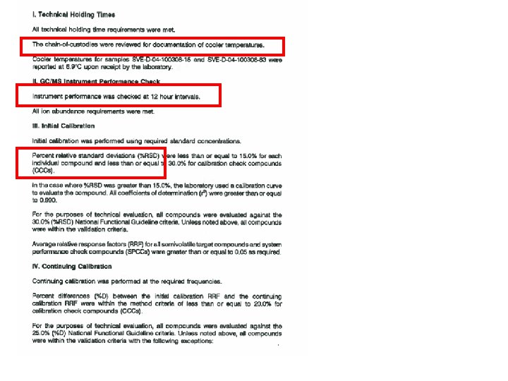 Validated method Document chain of custody Instrument drift is monitered Not the same as calibrated – for example checking gas flows, magnet capacity, intensity of the voltage for a source lamp, etc