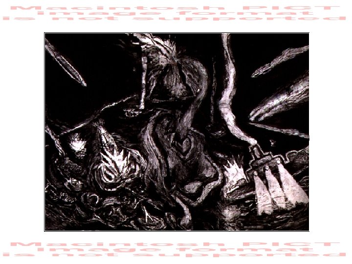 “Apocalypso/Calypso, Part II, ” etching, 1995. • Speaking about this series on the Balkans war, Milojevic says: • “I was angry at the futility of the destruction that was taking place, the • deterioration of this ‘imaginary homeland’ that I had been constructing. . . The images are very dark. I wanted them to look as though they had just come out of a smouldering fire. . . ” Collection of the artist.