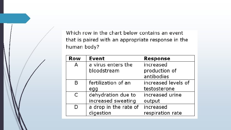 Which of the following correctly describes an interaction that occurs between two body systems of a horse that helps the horse outrun a pursuing bear? A The skeletal system releases additional calcium, and the circulatory system retains more sodium in the blood to provide muscles with ions for contraction. B The digestive system increases the rate of digestion, and the excretory system ceases to provide tissues with more nutrients. C The respiratory system increases the breathing rate, and the circulatory system increases blood pressure to provide tissues with more oxygen. D The endocrine system releases hormones that prepare the immune system to deal with possible injuries.