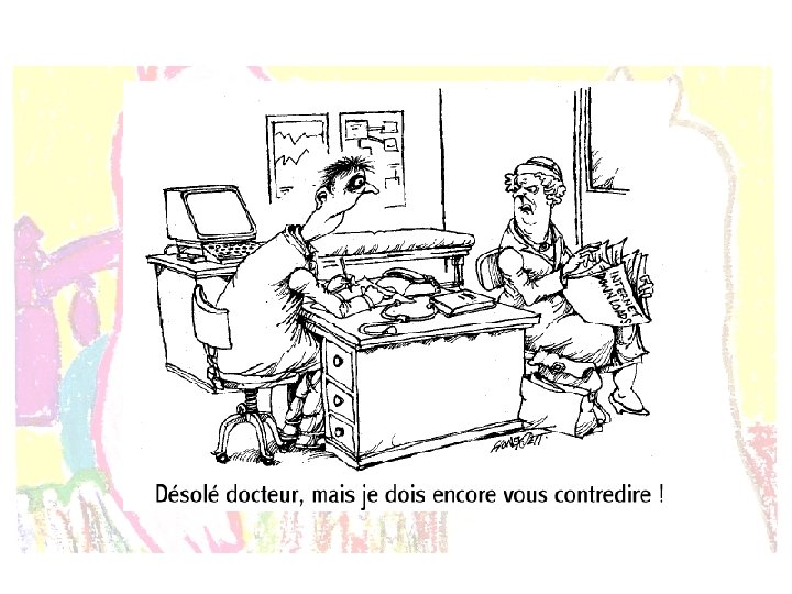 Interrogatoire • 1ère étape de la consultation • Orienté en fonction du motif de consultation/hospitalisation …attention à l’influence de la lettre du médecin traitant… • Durée: 5 -10 minutes maximum