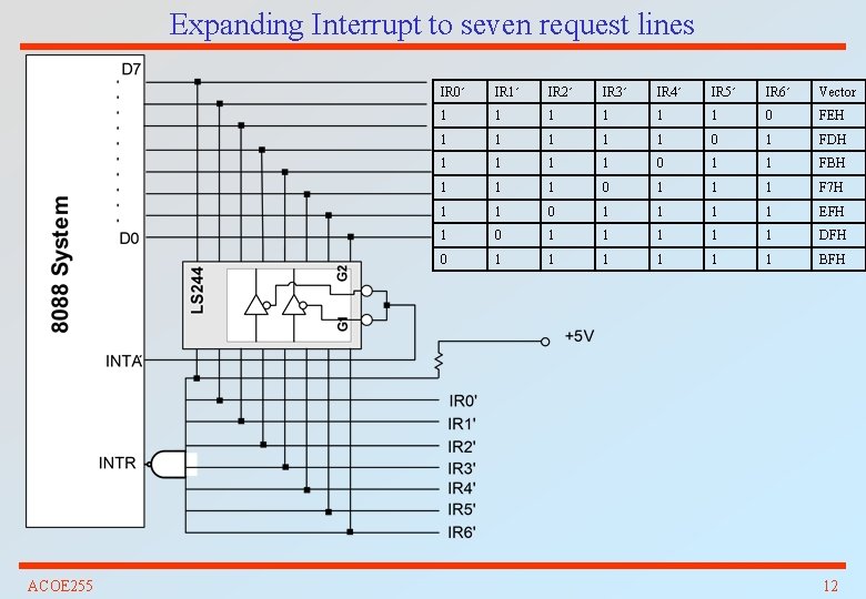 Expanding Interrupt to seven request lines ACOE 255 IR 0΄ IR 1΄ IR 2΄ IR 3΄ IR 4΄ IR 5΄ IR 6΄ Vector 1 1 1 0 FEH 1 1 1 0 1 FDH 1 1 0 1 1 FBH 1 1 1 0 1 1 1 F 7 H 1 1 0 1 1 EFH 1 0 1 1 1 DFH 0 1 1 1 BFH 12