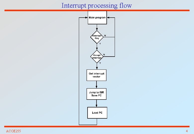Identifying Interrupt Source • Software Polling, – Checking each device • • Hardware Polling, (Daisy Chain), Hardware Identification (Vectored Interrupts). ACOE 255 13
