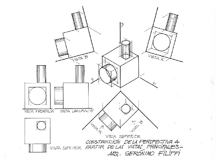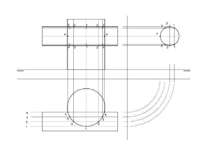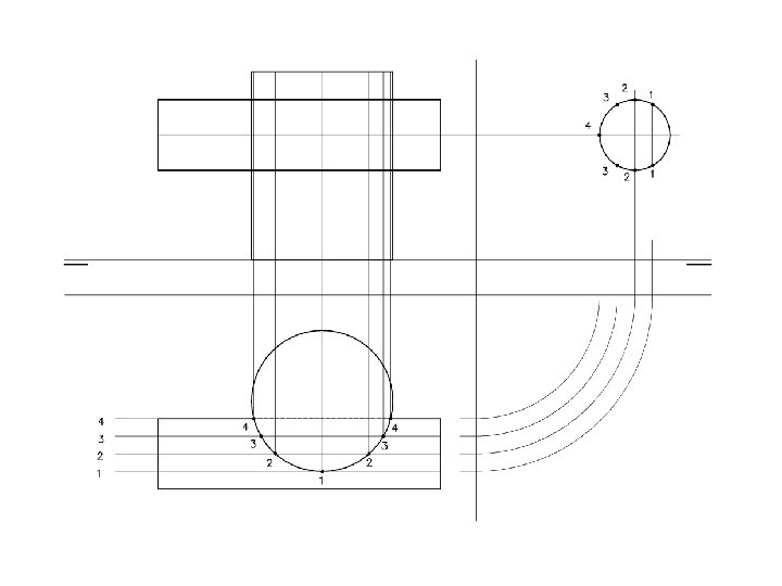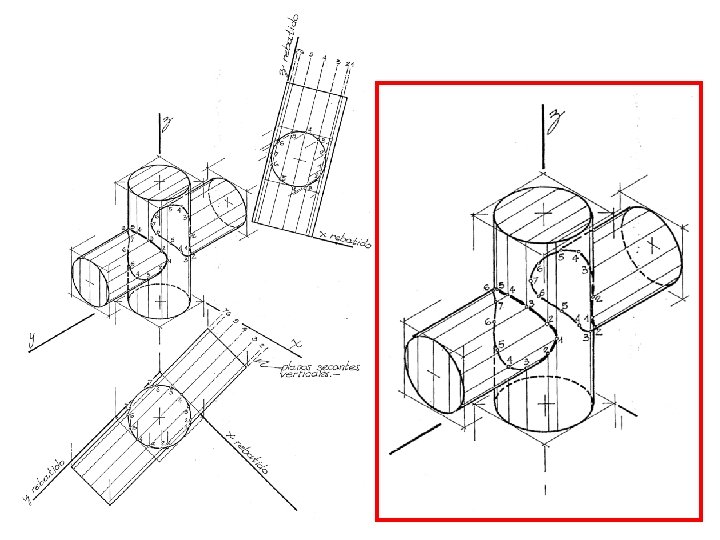 Método de obtención de intersecciones El método general para hallar la intersección resultante del encuentro de dos superficies o sólidos, consiste en cortar ambos elementos por un plano auxiliar (llamados también cortantes o secantes), y hallar sus intersecciones respectivas comunes a las dos superficies. Repitiendo esta operación con tantas superficies auxiliares como sean necesarias para delimitar el encuentro. Los puntos resultantes de cada sección se vincularan ordenadamente hasta obtener la intersección graficada.