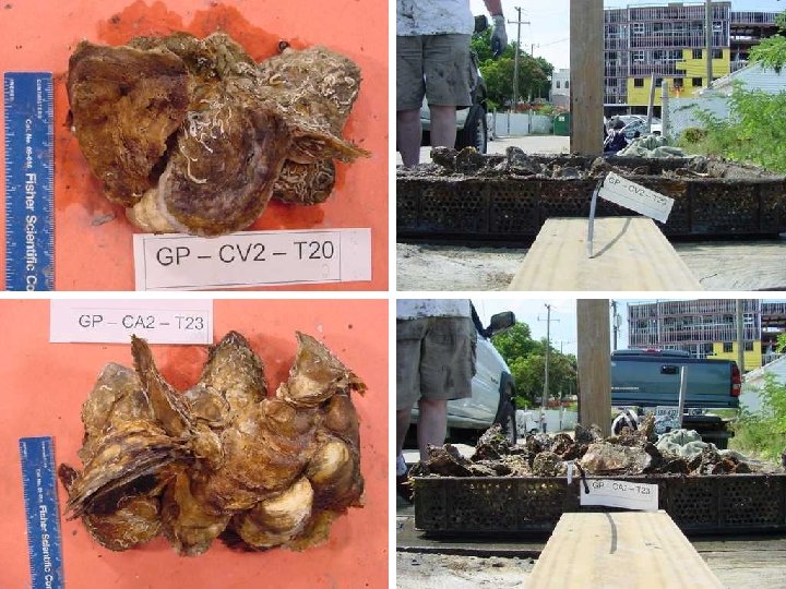 II. METHODS • Sampling = removal of 3 trays from each cage and replacement of sampled trays with those containing only clean shell. • Cages were sampled one month after deployment (i. e. , Nov-Dec 2005) to assess handling and early post-deployment mortality. • Quarterly sampling thereafter: Apr 2006, July 2006 and Oct 2006. • Future sampling: Apr 2007, July 2007 and Oct 2007.