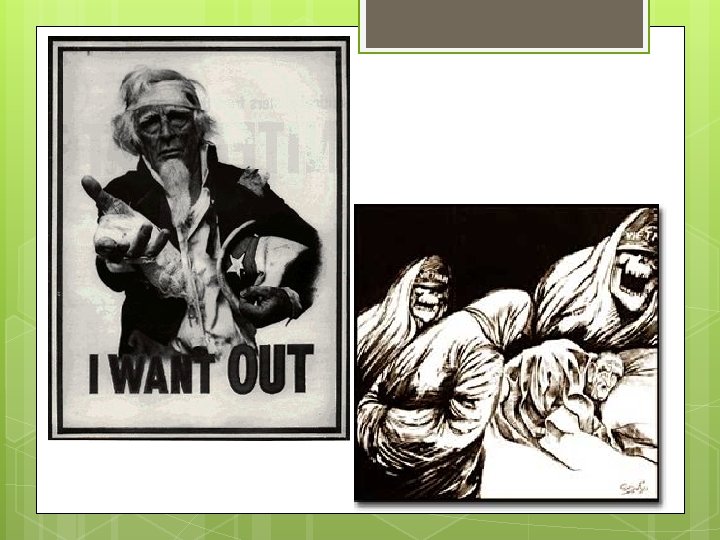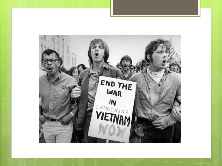 Hey, hey, LBJ, how many kids did you kill today? Draft beer, not boys! Hell no, we won’t go! Eighteen today, dead tomorrow Johnson lied, people died! Eve of destruction- Barry Mc. Guire John Lennon - Give Peace A Chance Fortunade Son - CCR