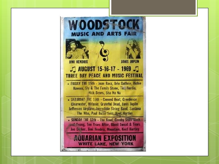 Other things in the 60 s Woodstock Betty Friedan and the women’s movement Miranda Arizona v