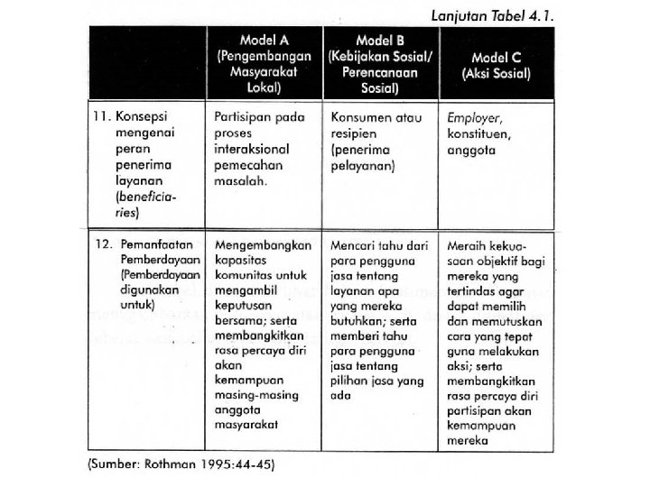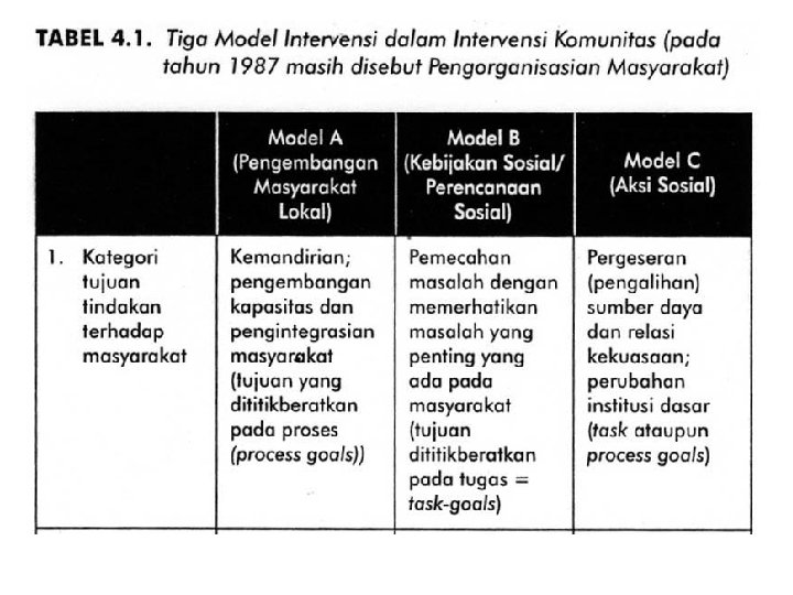 Model-model Pendekatan dalam Intervensi Makro (Rothman and Tropman, 1987)