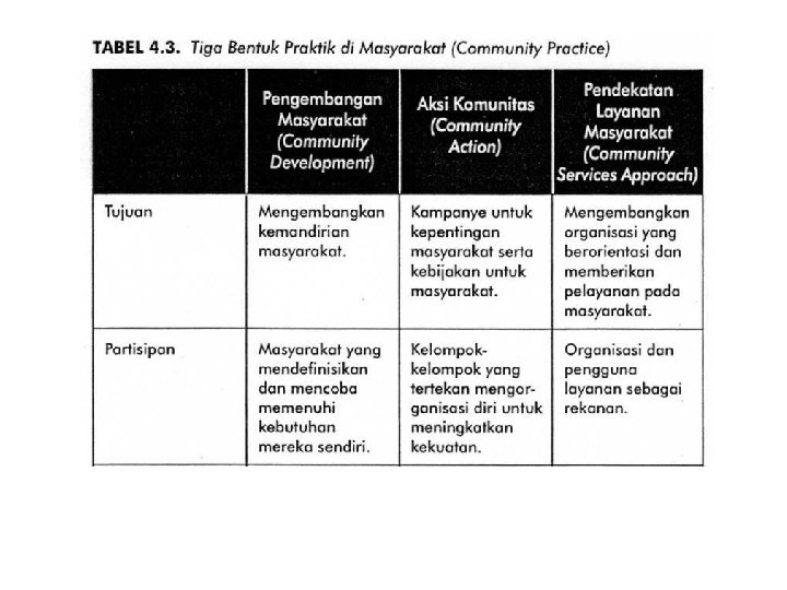 Pengertian Community Work • Community work adalah “the process of assisting ordinary people to improve their own communities by undertaking collective actions. ” (Twelvetrees, 1991). • Community work adalah suatu proses dalam membantu masyarakat untuk meningkatkan diri mereka sendiri melalui suatu aktivitas-aktivitas kolektif.