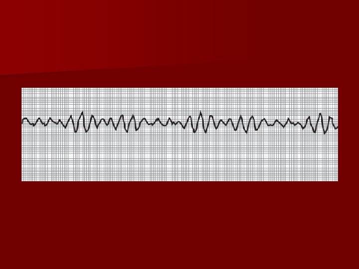Ventricular Fibrillation Also called V fib: a result of electrical chaos in the ventricles n Clinical manifestations n On initiation of VF, the client becomes faint, immediately loses consciousness, and becomes pulseless and apneic. There is no blood pressure, and heart sounds are absent. Respiratory and metabolic acidosis develop. Seizures may occur. Within minutes, the pupils become fixed and dilated, and the skin becomes cold and mottled. Death ensues without prompt restoration of an organized rhythm and cardiac output n